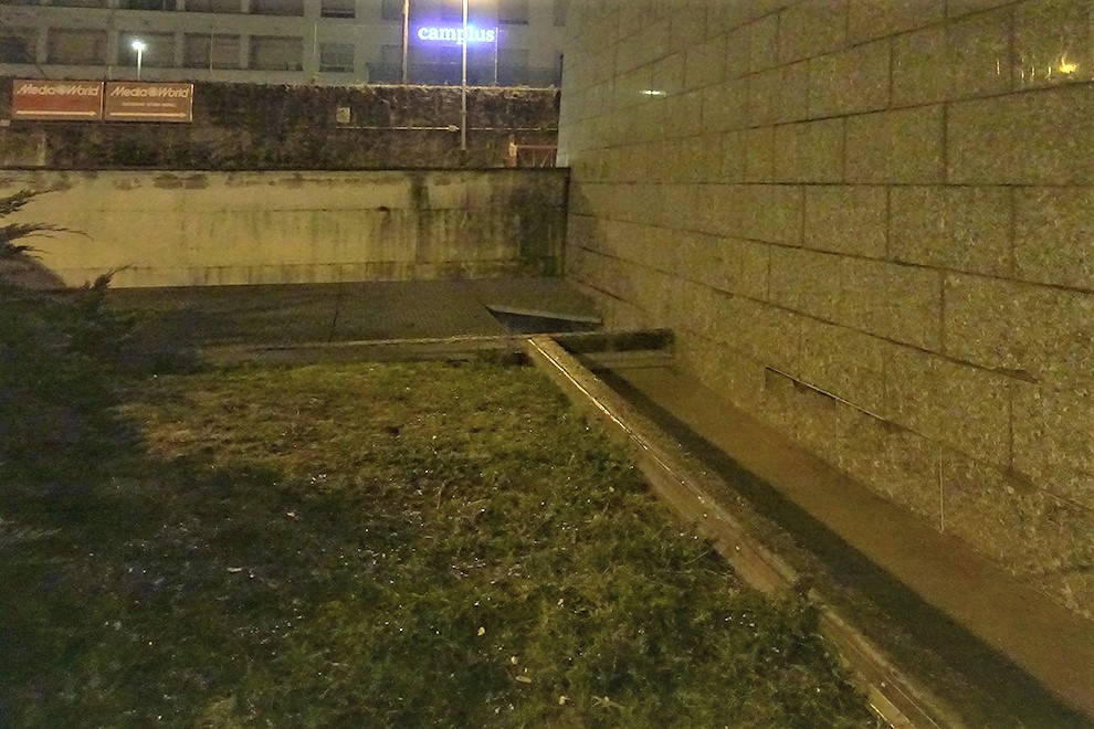 Il muretto della discesa al sottopasso e la grata manchente.