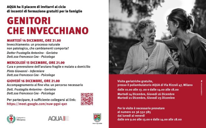 La giunta del Municipio 3, lo abbiamo sempre sospettato, è dotata di un grande senso dell’umorismo. La scorsa legislatura si è inventata un assessore alla Felicità, ora ha iniziato a distribuire pillole di saggezza tramite “Aqua – una struttura sanitaria assistenziale – con sede in via Rizzoli 47″ *, che, lieta, ci ha invitato ad ascoltare un geriatra, un infermiere e una psicologa perché i genitori invecchiano i figli crescono e debbono farsi carico di far si che i loro cari abbiano un accompagnamento al fine vita: un percorso necessario.