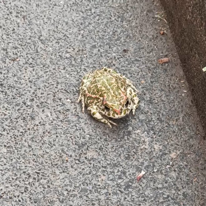 Noi siamo andato al Parco e all’ingresso abbiamo visto che “nell’area umida di via Feltre c’è il rospo smeraldino” e lui lo è.