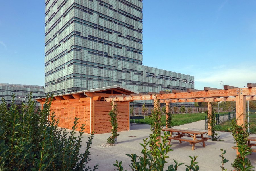 A sinistra del precedente cancello vi è un pergolato e la struttura che sarà usata dagli ortista