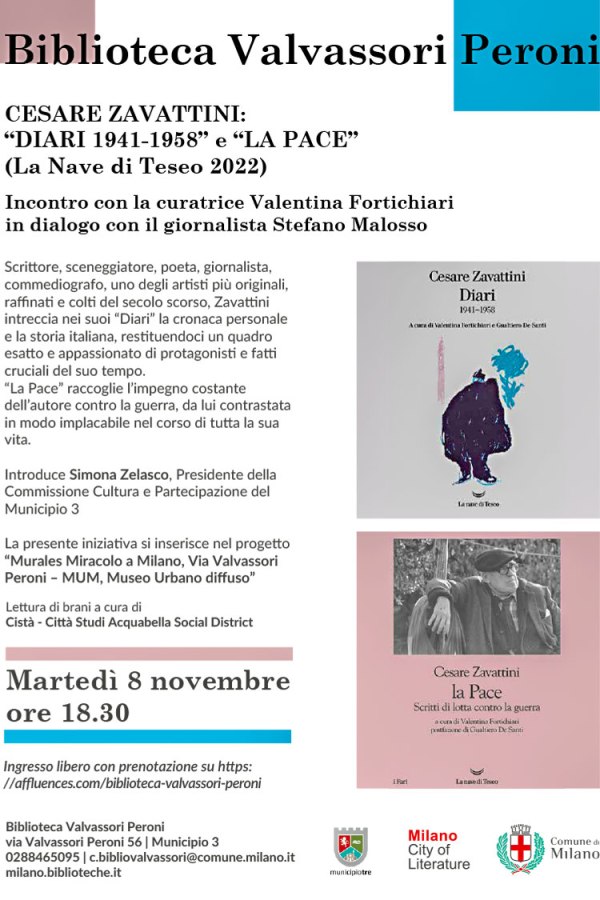 ← 08 novembre MIRACOLO A MILANO: CESARE ZAVATTINI “DIARI 1941 -1958 e LA PACE