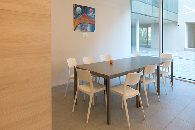 Tavoli all’interno del salone/studio/refettorio