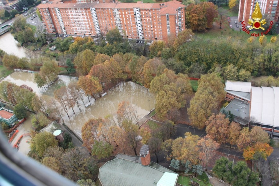 Questi sono i campi ricreativi di pallavolo e calcio del Centro Schuster posti dietro al palazzetto dello sport (a destra) e alla chiesetta (sotto). In alto a sinistra della foto si vede il ponte di via Rombon sotto cui passa il Lambro