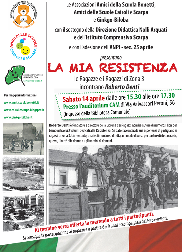 Un bel pomeriggio è stato vissuto, sabato 14 aprile, da genitori e figli, in compagnia di Roberto Denti, scrittore partigiano e fondatore della Libreria dei Ragazzi. Roberto Denti ha risposto alle domande di Biagio Goldestein Bolocan, animatore dell’incontro, e poi a quelle dei ragazzi, curiosi di apprendere particolari sulla sua esperienza di partigiano.