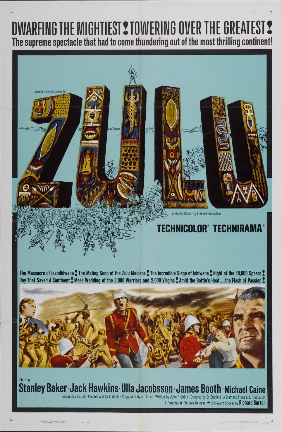 E’ un film anglofilo che si distingue nella cinematografia di quegli anni per un approccio al colonialismo quasi onesto. Ricostruisce la battaglia di Rorke’s Drift, combattuta il 22 ed il 23 gennaio 1879, fra l’esercito inglese e gli Zulu (del gruppo Bantu) nel corso della Guerra anglo-zulu (1878 – 1879). Qui 139 soldati britannici difesero con successo la guarnigione contro l’assalto di 4000 Zulu, residenti nel Natal (Sudafrica). Cosa che non era avvenuta nella battaglia di Isandlwana. che ebbe luogo il 22 gennaio del 1879 nei pressi dell’omonima montagna del Sudafrica orientale. In quel caso le perdite inglesi furono di 1300 morti e la disfatta patita nella battaglia obbligò il comandante in capo lord Chelmsford a interrompere l’invasione del regno zulu per rivedere la propria strategia. La battaglia di Isandlwana rappresentòla peggiore sconfitta riportata dalle forze armate britanniche contro un nemico tecnologicamente inferiore, e le perdite sono state le più alte mai patite dal British Army contro un nemico africano.