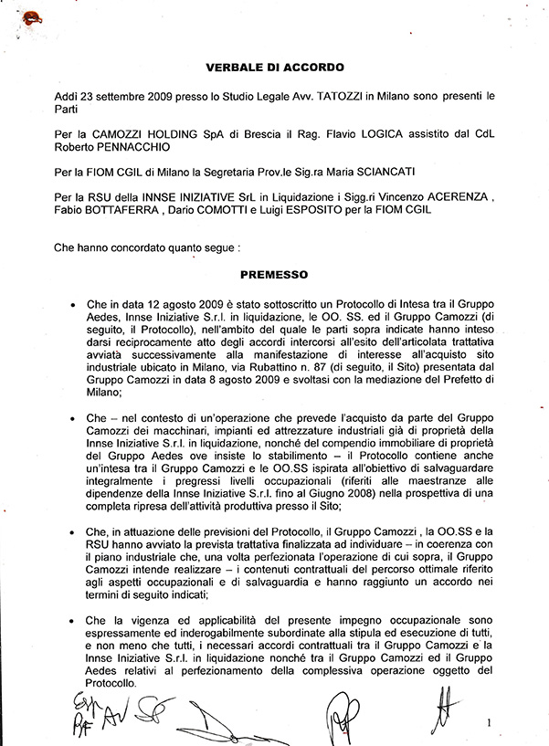 • 20 marzo LA INNSE MILANO SPA E LA COMOZZI INDUSTRIES SPA CONDANNATE A PAGARE UNA RISARCITORIA DI 20 MENSILITA’ A MASSIMO MERLO
