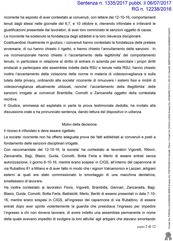 • 20 marzo LA INNSE MILANO SPA E LA COMOZZI INDUSTRIES SPA CONDANNATE A PAGARE UNA RISARCITORIA DI 20 MENSILITA’ A MASSIMO MERLO