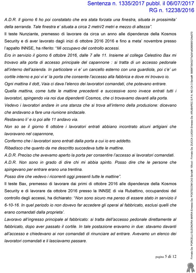 • 20 marzo LA INNSE MILANO SPA E LA COMOZZI INDUSTRIES SPA CONDANNATE A PAGARE UNA RISARCITORIA DI 20 MENSILITA’ A MASSIMO MERLO